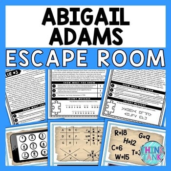 This Print and Go Abigail Adams Escape Room is a winning combination of reading comprehension, reading passages, movement, secret codes, citing evidence, deductive reasoning, puzzles, collaboration, close reading skills and critical thinking. Everything a teacher dreams of wrapped up into one FUN and engaging non-fiction activity that reinforces ELA skills.