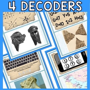 There are 4 clue cards and 4 puzzle decoders. Each clue card includes a short reading passage, questions to check for understanding, and a secret message to decode. Students will have to use deductive reasoning to determine which puzzle decoder corresponds with which clue. A set of labeled decoders is included for differentiation or younger grades.