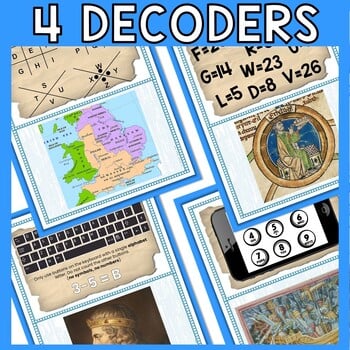 There are 4 clue cards and 4 puzzle decoders. Each clue card includes a short reading passage, questions to check for understanding, and a secret message to decode. Students will have to use deductive reasoning to determine which puzzle decoder corresponds with which clue. A set of labeled decoders is included for differentiation or younger grades.
