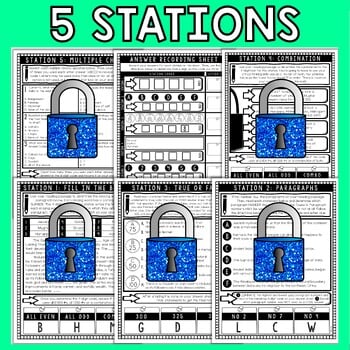 With their reading passage in hand, students will move around the classroom visiting 5 stations. At each station, they will determine a 4-digit code and reveal a “letter clue” to determine the final ALPHA code. In order to “escape” students must present the 4-digit code for EVERY station as well as the final 4-digit ALPHA code. They must show completion on all stations.
