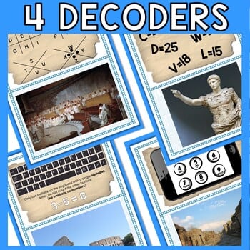 There are 4 clue cards and 4 puzzle decoders. Each clue card includes a short reading passage, questions to check for understanding, and a secret message to decode. Students will have to use deductive reasoning to determine which puzzle decoder corresponds with which clue. A set of labeled decoders is included for differentiation or younger grades.