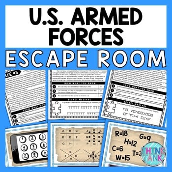 This Print and Go Armed Forces (US Military) Escape Room is a winning combination of reading comprehension, reading passages, movement, secret codes, citing evidence, deductive reasoning, puzzles, collaboration, close reading skills and critical thinking. Everything a teacher dreams of wrapped up into one FUN and engaging non-fiction activity that reinforces ELA skills.