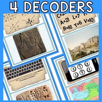 There are 4 clue cards and 4 puzzle decoders. Each clue card includes a short reading passage, questions to check for understanding, and a secret message to decode. Students will have to use deductive reasoning to determine which puzzle decoder corresponds with which clue. A set of labeled decoders is included for differentiation or younger grades.