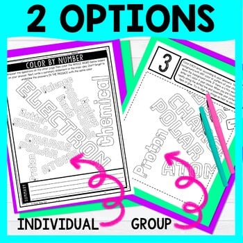 Practice reading comprehension skills with this Chemical Bonding Color by Number Close Reading Activity. Students will examine the non-fiction, informational text multiple times. This activity includes TWO options for students (individual coloring page or group collaborative poster). Great addition to your chemistry unit.