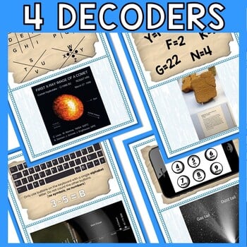 There are 4 clue cards and 4 puzzle decoders. Each clue card includes a short reading passage, questions to check for understanding, and a secret message to decode. Students will have to use deductive reasoning to determine which puzzle decoder corresponds with which clue. A set of labeled decoders is included for differentiation or younger grades.