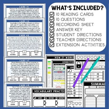 Students start with a question found on their answer recording sheet. They then visit multiple passages until they find the answer they are looking for. Then, they record what card NUMBER the answer can be found on. Students may work the questions and reading cards in any order until all 10 are completed. But here’s the catchโฆ students will NOT know where to find the answer so they will have to visit, skim, browse and revisit the reading cards several times to find the answer they are seeking. (The more times they read or skim, the greater the chances of the info sinking in!)