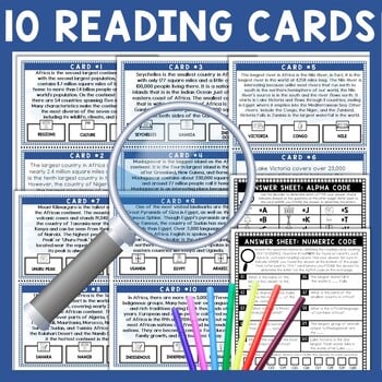 No more boring reading passages where students are stuck at their desk turning textbook pages! Students will move around the classroom visiting TEN reading cards, reading short passages, finding text evidence and answering 10 questions. Each question has an image answer that indicates a specific LETTER of the alphabet.
