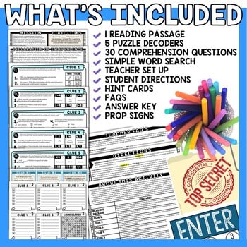 The activity strengthens non-fiction ELA skills with a fun, interactive approach to learning that keeps your students hooked from beginning to end. Give your students a chance to get out of their seats, decode puzzles and read passages, all while actively learning!