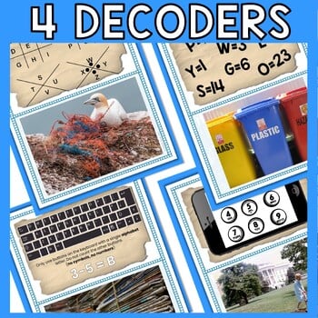 There are 4 clue cards and 4 puzzle decoders. Each clue card includes a short reading passage, questions to check for understanding, and a secret message to decode. Students will have to use deductive reasoning to determine which puzzle decoder corresponds with which clue. A set of labeled decoders is included for differentiation or younger grades.