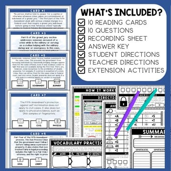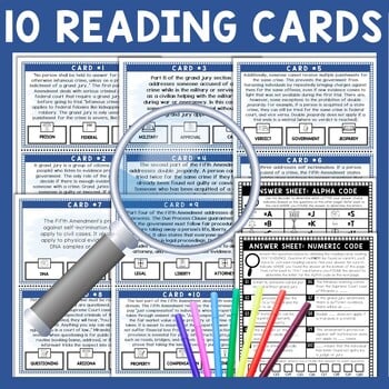 This Fifth Amendment (Bill of Rights) Scavenger Hunt lesson is an engaging cross-curricular activity that incorporates reading comprehension, informational text, citing text evidence, movement and critical thinking skills. It also includes an escape room aspect of a final 4-digit numeric code and 4-digit alpha code, leaving your students eager to finish the task. Great introduction to your U.S. Constitution unit.