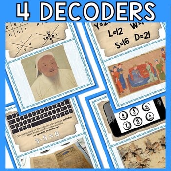 There are 4 clue cards and 4 puzzle decoders. Each clue card includes a short reading passage, questions to check for understanding, and a secret message to decode. Students will have to use deductive reasoning to determine which puzzle decoder corresponds with which clue. A set of labeled decoders is included for differentiation or younger grades.