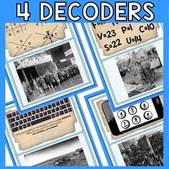 There are 4 clue cards and 4 puzzle decoders. Each clue card includes a short reading passage, questions to check for understanding, and a secret message to decode. Students will have to use deductive reasoning to determine which puzzle decoder corresponds with which clue. A set of labeled decoders is included for differentiation or younger grades.