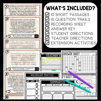 This History of Chocolate Scavenger Hunt lesson is an engaging cross-curricular gallery walk activity that incorporates reading comprehension, informational text, citing text evidence, movement and critical thinking skills. It also includes an escape room aspect of a final mystery word and secret 4-digit code, leaving your students eager to finish the task.