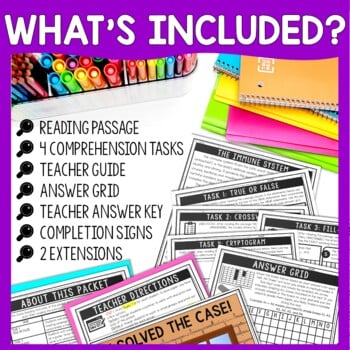The close reading activities in this packet allow students to work on comprehension skills after reading the passage several times searching for text evidence. As students complete each task, they will reveal a mystery word to unscramble and a new clue. No prior knowledge is needed.