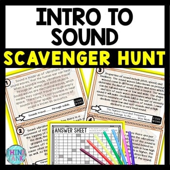 This Intro to Sound Scavenger Hunt lesson is an engaging cross-curricular gallery walk activity that incorporates reading comprehension, informational text, citing text evidence, movement and critical thinking skills. It also includes an escape room aspect of a final mystery word and secret 4-digit code, leaving your students eager to finish the task.