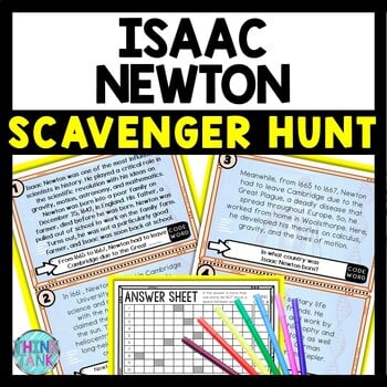 This Isaac Newton Scavenger Hunt lesson is an engaging cross-curricular gallery walk activity that incorporates reading comprehension, informational text, citing text evidence, movement and critical thinking skills. It also includes an escape room aspect of a final mystery word and secret 4-digit code, leaving your students eager to finish the task. Great introduction to your notable scientists or physics unit.