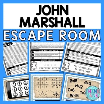 This Print and Go John Marshall Escape Room is a winning combination of reading comprehension, reading passages, movement, secret codes, citing evidence, deductive reasoning, puzzles, collaboration, close reading skills and critical thinking. Everything a teacher dreams of wrapped up into one FUN and engaging non-fiction activity that reinforces ELA skills.