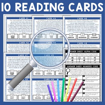 This Judicial Branch Scavenger Hunt lesson is an engaging cross-curricular activity that incorporates reading comprehension, informational text, citing text evidence, movement and critical thinking skills. It also includes an escape room aspect of a final 4-digit numeric code and 4-digit alpha code, leaving your students eager to finish the task. Great introduction to your Branches of Government unit.