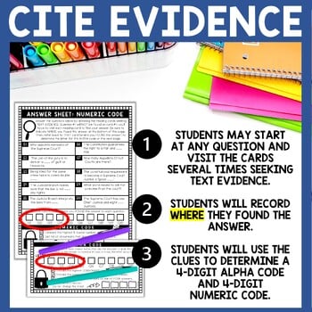 Students will revisit the non-fiction text multiple times practicing reading comprehension skills as they rotate around the room seeking text evidence. To ensure understanding of the subject matter, students will answer questions that MUST be found directly in the reading passages. No prior knowledge is needed.