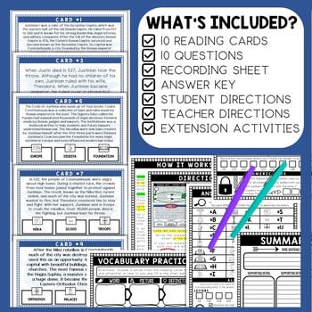 This Justinian I (Byzantine Empire) Scavenger Hunt lesson is an engaging cross-curricular activity that incorporates reading comprehension, informational text, citing text evidence, movement and critical thinking skills. It also includes an escape room aspect of a final 4-digit numeric code and 4-digit alpha code, leaving your students eager to finish the task. Great introduction to your Middle Ages unit.