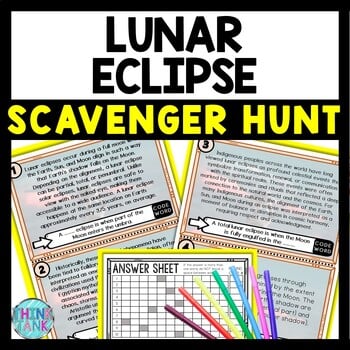 This Lunar Eclipse Scavenger Hunt lesson is an engaging cross-curricular gallery walk activity that incorporates reading comprehension, informational text, citing text evidence, movement and critical thinking skills. It also includes an escape room aspect of a final mystery word and secret 4-digit code, leaving your students eager to finish the task. Great introduction to your Solar System unit.