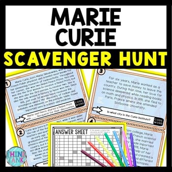 This Marie Curie Scavenger Hunt lesson is an engaging cross-curricular gallery walk activity that incorporates reading comprehension, informational text, citing text evidence, movement and critical thinking skills. It also includes an escape room aspect of a final mystery word and secret 4-digit code, leaving your students eager to finish the task. Great introduction to your notable scientist or Women’s History Month unit.