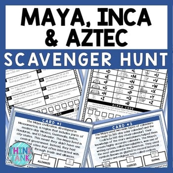 This Maya, Inca, Aztec Scavenger Hunt lesson is an engaging cross-curricular activity that incorporates reading comprehension, informational text, citing text evidence, movement and critical thinking skills. It also includes an escape room aspect of a final 4-digit numeric code and 4-digit alpha code, leaving your students eager to finish the task. Great introduction to your Ancient Civilizations unit.