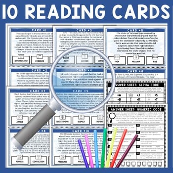 This Miranda v. Arizona Scavenger Hunt lesson is an engaging cross-curricular activity that incorporates reading comprehension, informational text, citing text evidence, movement and critical thinking skills. It also includes an escape room aspect of a final 4-digit numeric code and 4-digit alpha code, leaving your students eager to finish the task. Great introduction to your Civics and Government unit.