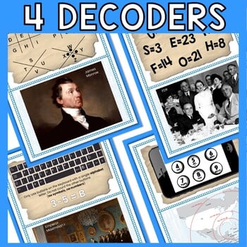 There are 4 clue cards and 4 puzzle decoders. Each clue card includes a short reading passage, questions to check for understanding, and a secret message to decode. Students will have to use deductive reasoning to determine which puzzle decoder corresponds with which clue. A set of labeled decoders is included for differentiation or younger grades.