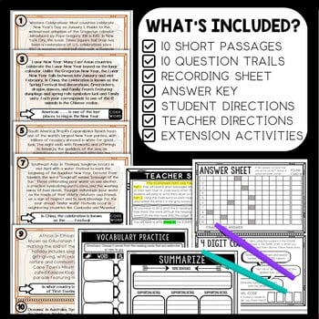 This New Year’s Around the World Scavenger Hunt lesson is an engaging cross-curricular activity that incorporates reading comprehension, informational text, citing text evidence, movement and critical thinking skills. It also includes an escape room aspect of a final 4-digit numeric code and 4-digit alpha code, leaving your students eager to finish the task.