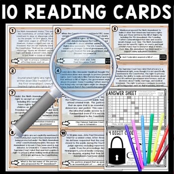 This Ninth Amendment Scavenger Hunt lesson is an engaging cross-curricular gallery walk activity that incorporates reading comprehension, informational text, citing text evidence, movement and critical thinking skills. It also includes an escape room aspect of a final mystery word and secret 4-digit code, leaving your students eager to finish the task. Great introduction to your U.S. Constitution unit.