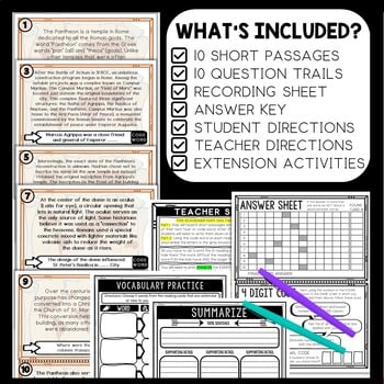 This Pantheon (Ancient Rome) Scavenger Hunt lesson is an engaging cross-curricular gallery walk activity that incorporates reading comprehension, informational text, citing text evidence, movement and critical thinking skills. It also includes an escape room aspect of a final mystery word and secret 4-digit code, leaving your students eager to finish the task. Great introduction to your Ancient Rome unit.