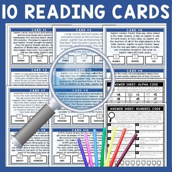No more boring reading passages where students are stuck at their desk turning textbook pages! Students will move around the classroom visiting TEN reading cards, reading short passages, finding text evidence and answering 10 questions. Each question has an image answer that indicates a specific LETTER of the alphabet.