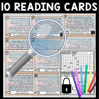 This Planet Saturn Scavenger Hunt lesson is an engaging cross-curricular gallery walk activity that incorporates reading comprehension, informational text, citing text evidence, movement and critical thinking skills. It also includes an escape room aspect of a final mystery word and secret 4-digit code, leaving your students eager to finish the task. Great introduction to your Solar System or astronomy unit.