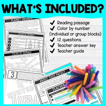Practice reading comprehension skills with this Planet Uranus Color by Number Close Reading Activity. Students will examine the non-fiction, informational text multiple times. This activity includes TWO options for students (individual coloring page or group collaborative poster).