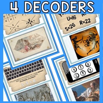 There are 4 clue cards and 4 puzzle decoders. Each clue card includes a short reading passage, questions to check for understanding, and a secret message to decode. Students will have to use deductive reasoning to determine which puzzle decoder corresponds with which clue. A set of labeled decoders is included for differentiation or younger grades.