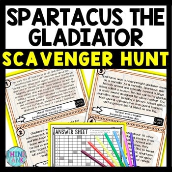 This Spartacus (Ancient Rome) Scavenger Hunt lesson is an engaging cross-curricular gallery walk activity that incorporates reading comprehension, informational text, citing text evidence, movement and critical thinking skills. It also includes an escape room aspect of a final mystery word and secret 4-digit code, leaving your students eager to finish the task. Great introduction to your Ancient Rome unit.