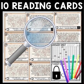 This Terracotta Army Scavenger Hunt lesson is an engaging cross-curricular gallery walk activity that incorporates reading comprehension, informational text, citing text evidence, movement and critical thinking skills. It also includes an escape room aspect of a final mystery word and secret 4-digit code, leaving your students eager to finish the task. Great introduction to your Ancient China unit.