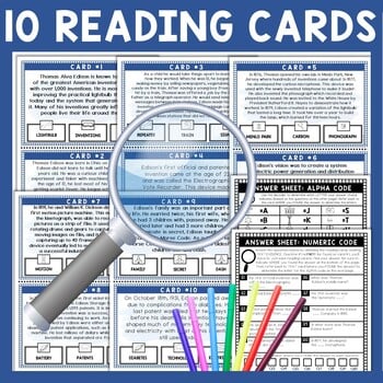 This Thomas Edison Scavenger Hunt lesson is an engaging cross-curricular activity that incorporates reading comprehension, informational text, citing text evidence, movement and critical thinking skills. It also includes an escape room aspect of a final 4-digit numeric code and 4-digit alpha code, leaving your students eager to finish the task. Great introduction to your notable scientists or inventors unit.