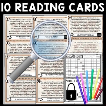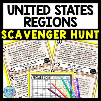 This United States Regions Scavenger Hunt lesson is an engaging cross-curricular gallery walk activity that incorporates reading comprehension, informational text, citing text evidence, movement and critical thinking skills. It also includes an escape room aspect of a final mystery word and secret 4-digit code, leaving your students eager to finish the task. Great introduction to your Geography unit.