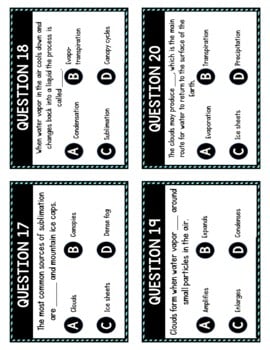 Cure student boredom with theย Waterย Cycleย Task Cards Review Game and allow students to move around the room! The printable task cards activity includesย 24ย questions related to theย water cycle and earth science.