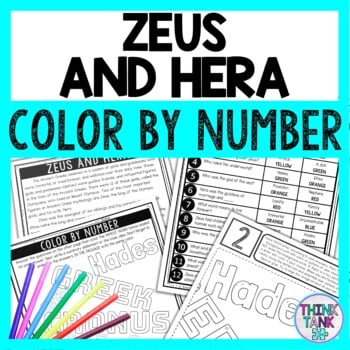 Practice reading comprehension skills with this Zeus and Hera (Greek Mythology) Color by Number Close Reading Activity. Students will examine the non-fiction, informational text multiple times. This activity includes TWO options for students (individual coloring page or group collaborative poster).